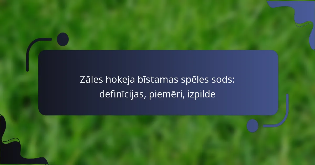 Bīstamas spēles sodi zālāju hokejā var novest pie tūlītējām diskvalifikācijām spēlētājiem, ietekmējot gan viņu komandas, gan karjeras. Šie sodi prioritizē spēlētāju drošību un var radīt ilgstošas sekas uz reputāciju un komandas dinamiku.