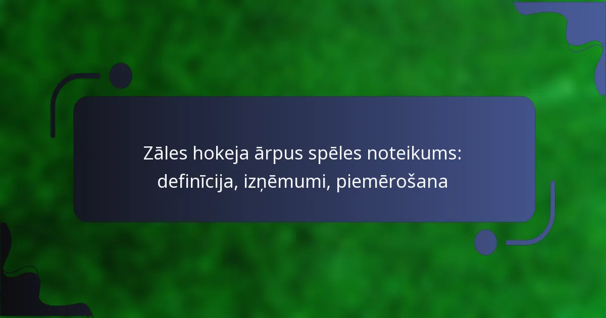 Zāles hokeja ārpus spēles noteikumam ir specifiski izņēmumi, kas var ietekmēt spēli. Izpratne par šiem izņēmumiem ir būtiska spēlētājiem un treneriem, lai efektīvi orientētos spēlē un izvairītos no nevajadzīgiem sodiem.