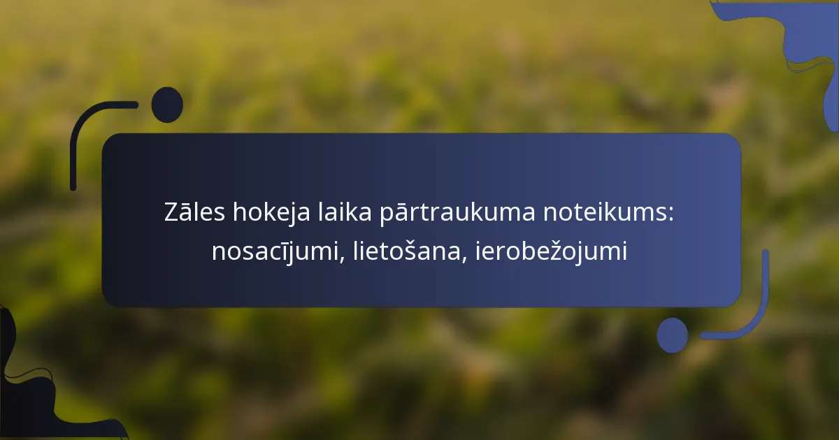 Laika pārtraukuma noteikumam zāles hokejā ir specifiski ierobežojumi, kurus spēlētājiem un treneriem jāizprot, lai to efektīvi izmantotu. Parasti komandām ir atļauts ierobežots skaits laika pārtraukumu katrā spēlē, un to nepareiza izmantošana var novest pie sodiem, kas ietekmē spēles gaitu. Šo nosacījumu izpratne var uzlabot stratēģisko lēmumu pieņemšanu maču laikā.
