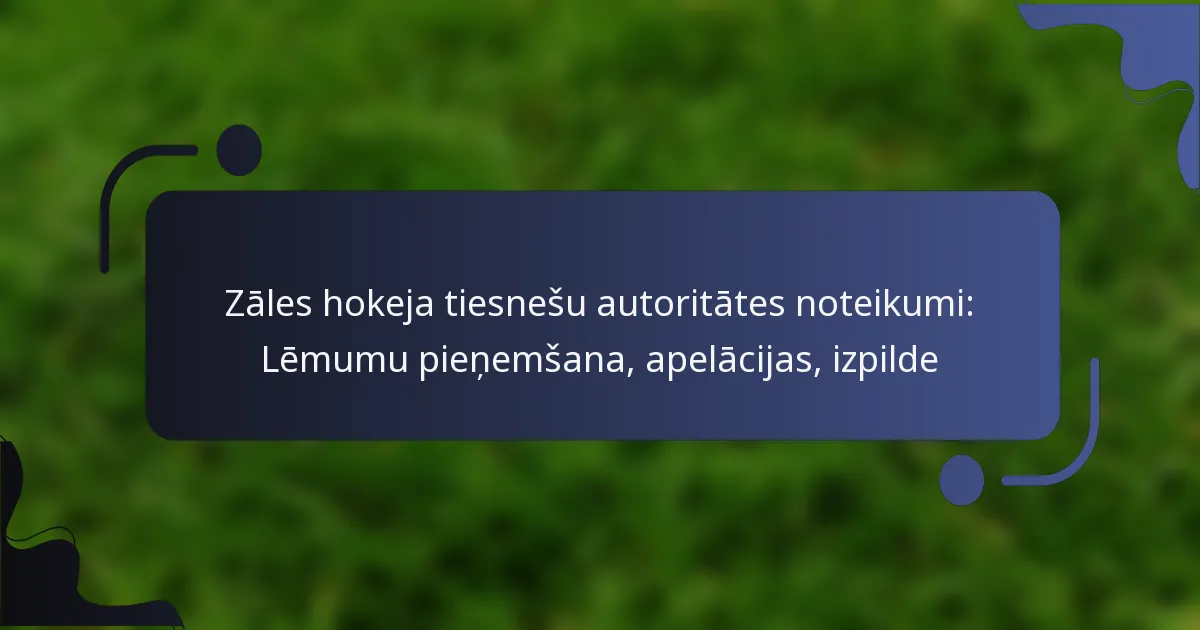 Zāles hokejā apelācijas process ļauj komandām apstrīdēt tiesnešu pieņemtos lēmumus par noteikumu pārkāpumiem. Šo procesu regulē konkrēti vadlīnijas, kas nodrošina skaidrību un taisnīgumu lēmumu pieņemšanā.
